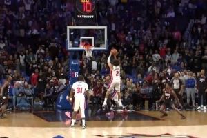 > 大将之风!康宁汉姆预判包夹抢冲内线 高难度转身跳投命中关键2分!