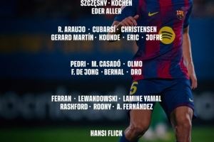 体育资讯9月28日讯 巴萨本轮西甲将迎战皇家社会,球队官方也公布了本场球队大名单,亚马尔回归,拉菲尼亚、门将霍安-加西亚缺席。具体如下: